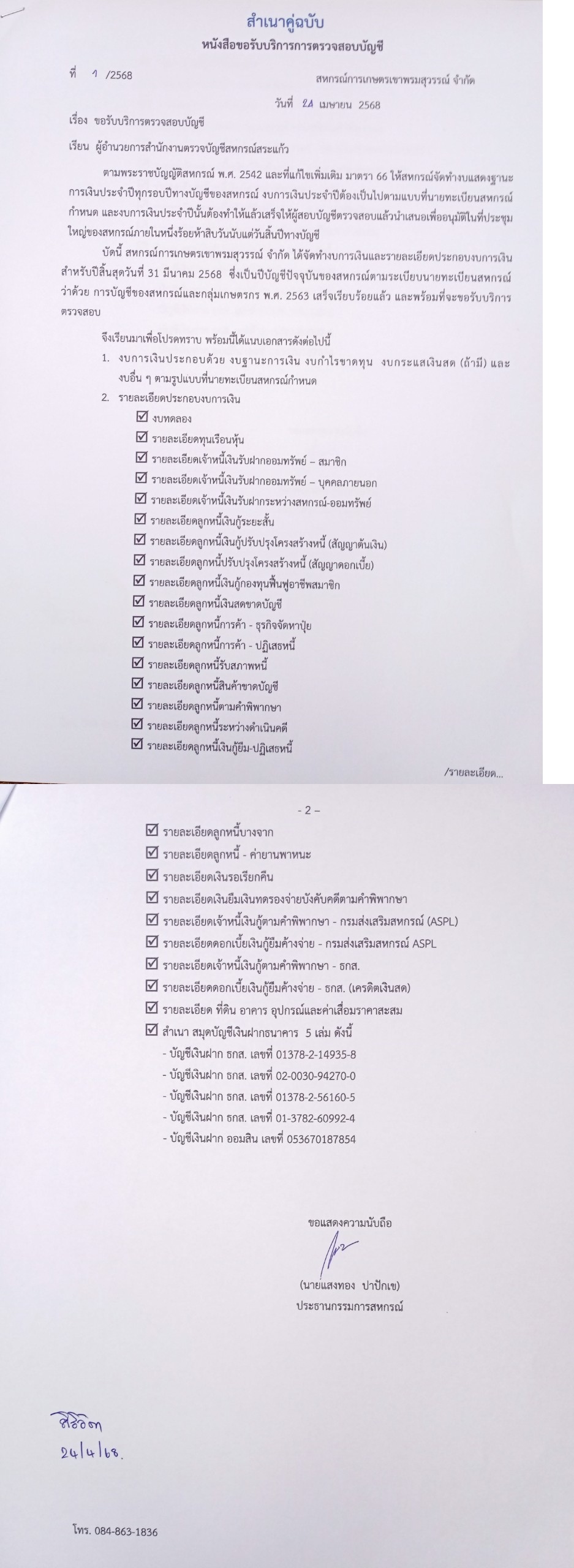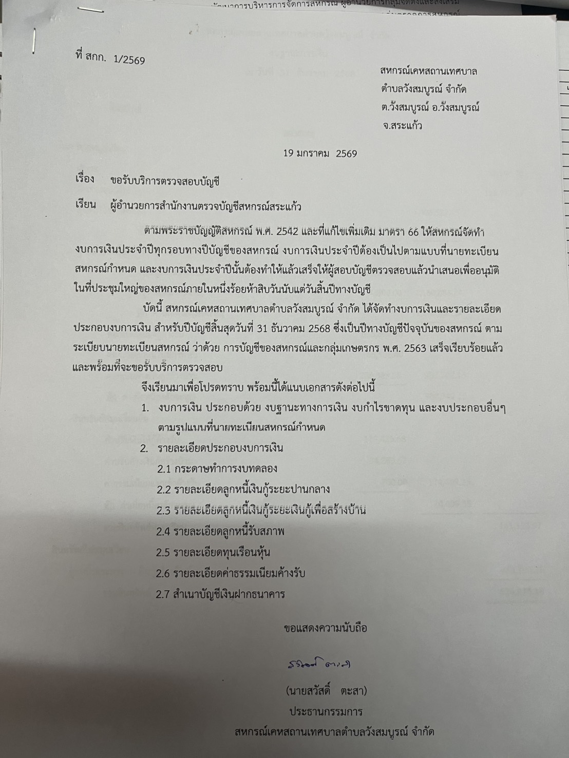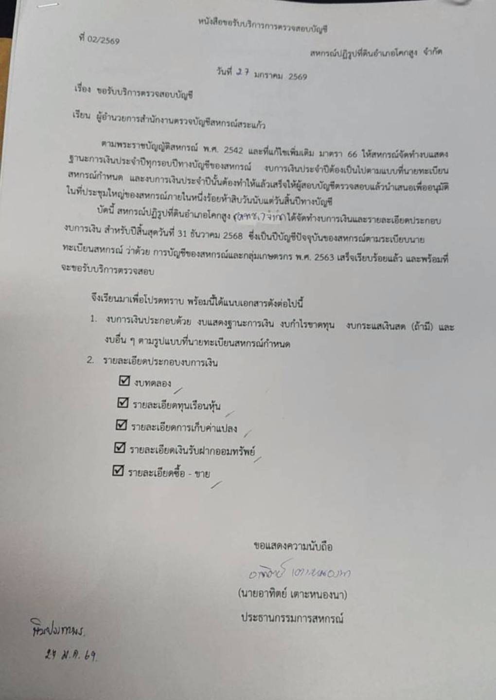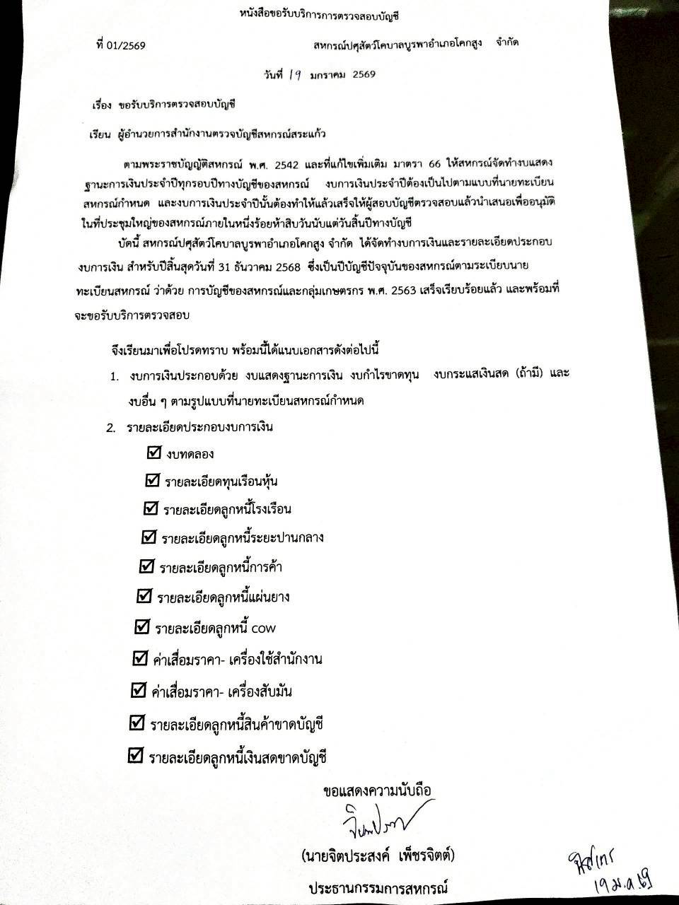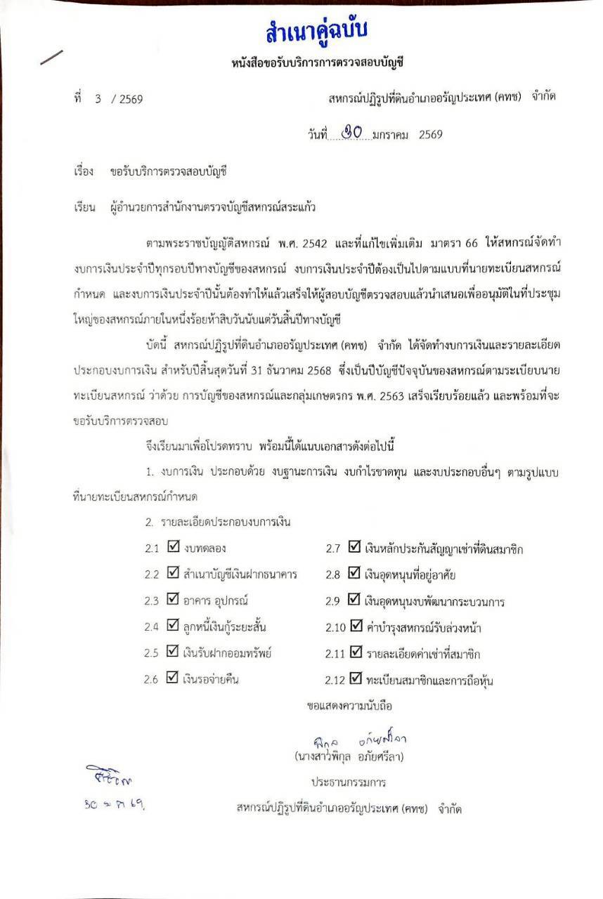 | 76 | สกก.พัฒนาป่าเขาฉกรรจ์-โนนสาวเอ้123 จำกัด | เกษตร | 04 | 30 เม.ย. 69 | 1 | ||||||||||||||||