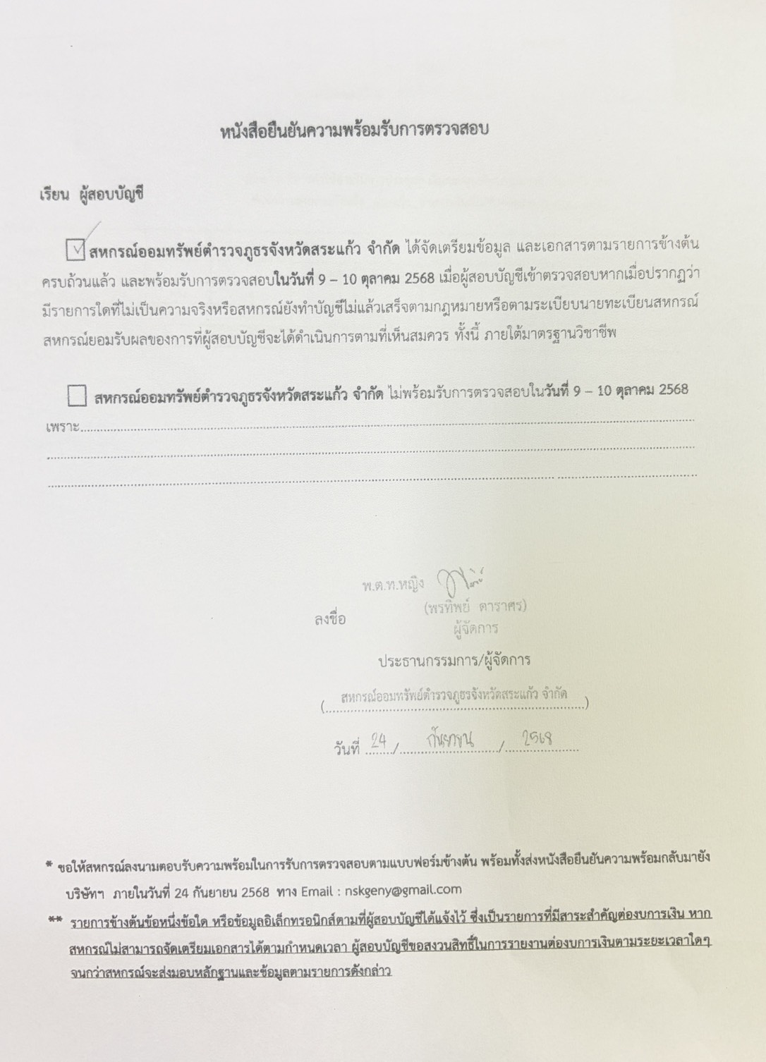 (3) สหกรณ์จัดทำงบการเงินประจำปี และส่งให้ผู้สอบบัญชีได้ |