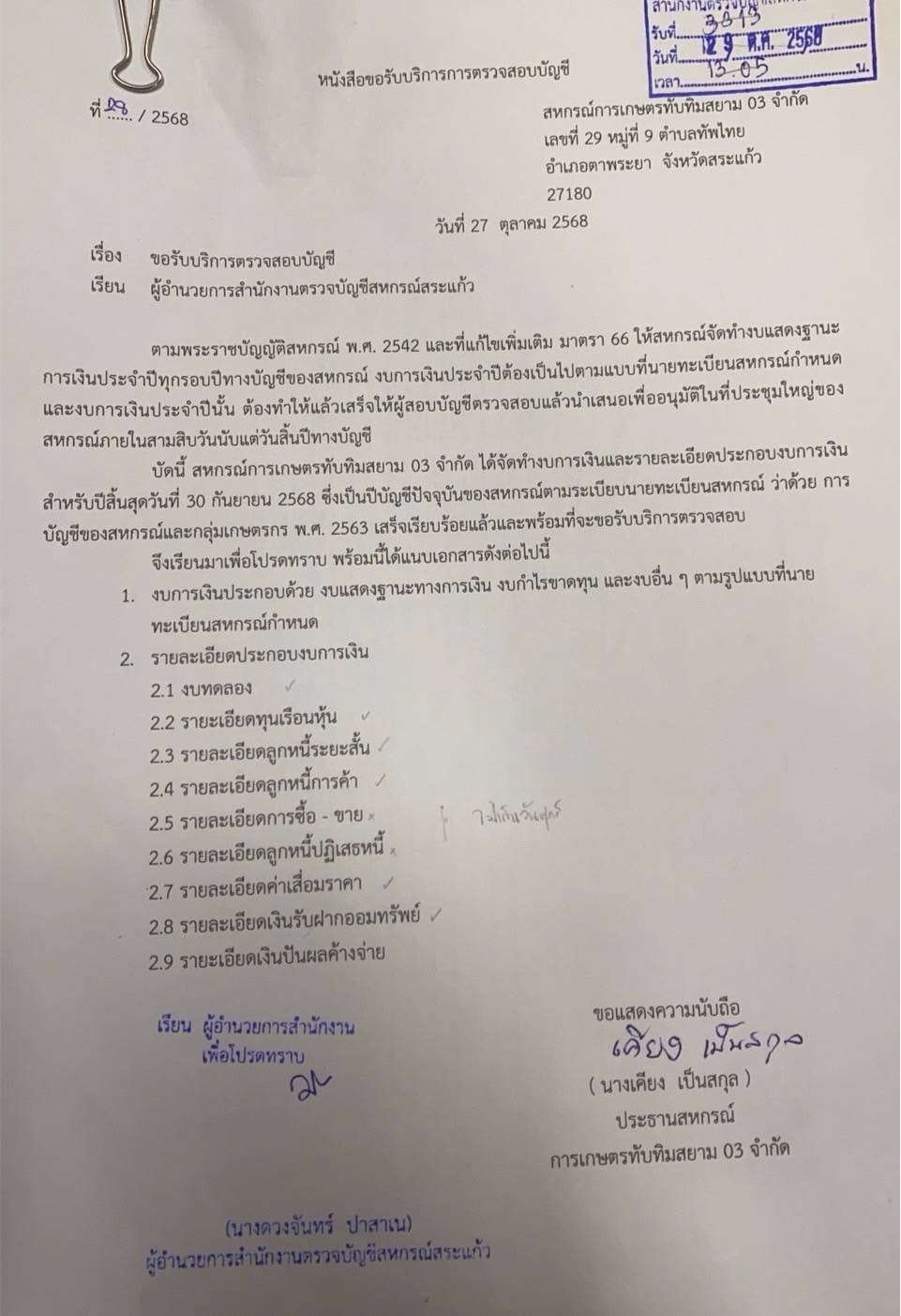 | 10 | สก.เครดิตยูเนี่ยนบ้านคลองมะละกอ จำกัด | เครดิตยูเนี่ยน | 09 | 30 ก.ย. 68 | 1 | 30 | 1 |