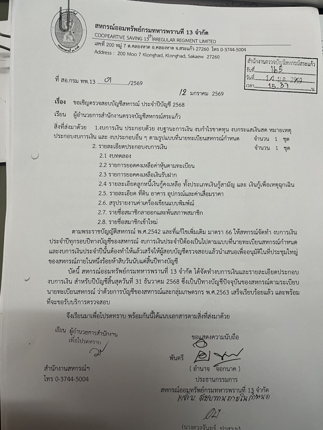 | 6 | สอ.กองพันทหารราบที่ 2 กรมทหารราบที่ 12 รักษาพระองค์ จำกัด | ออมทรัพย์ | 09 | 30 ก.ย. 68 | 1 | 28 | 1 |