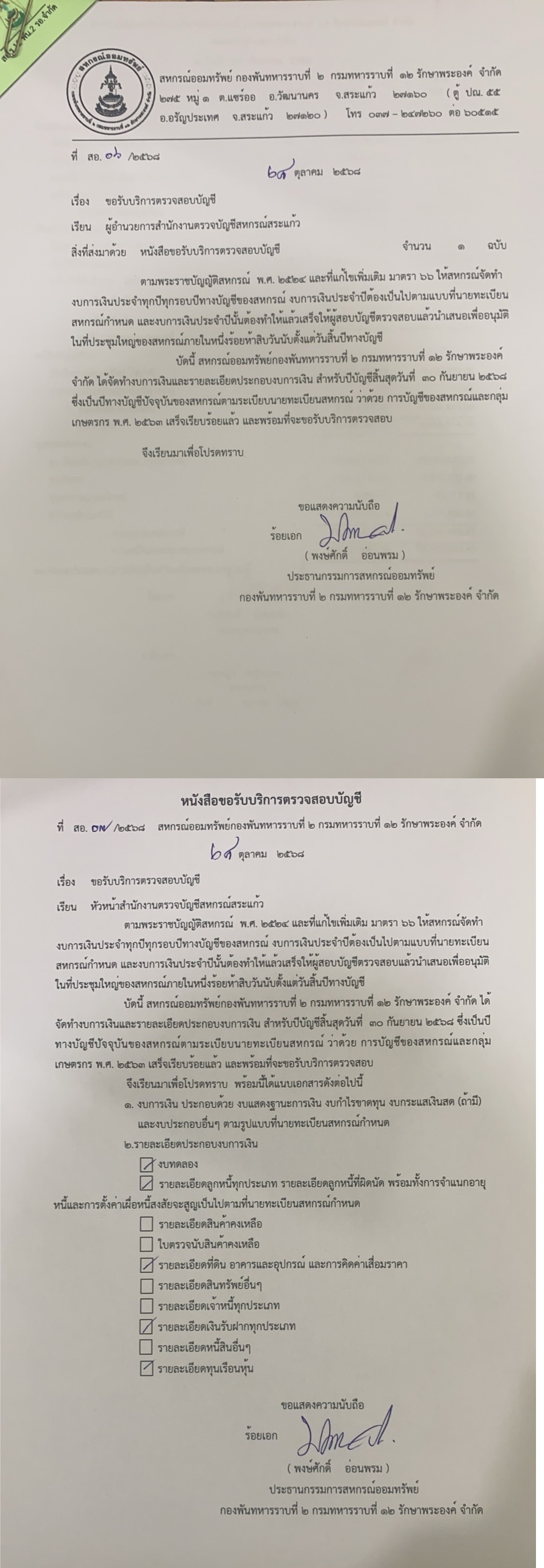 | 2 | สอ. ร.12 พัน 1 รอ. จำกัด | ออมทรัพย์ | 09 | 30 ก.ย. 68 | 1 | 1 | 1 |