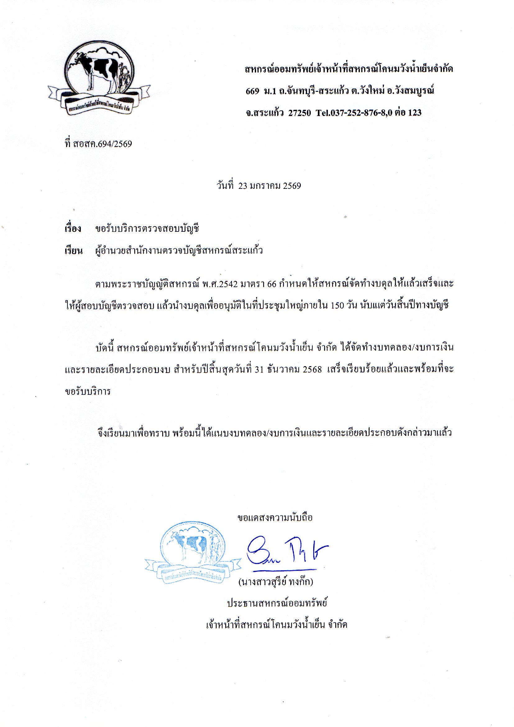 | 36 | สก.โคนมวังน้ำเย็น จำกัด | เกษตร | 12 | 31 ธ.ค. 68 | 1 | 22 | 1 |